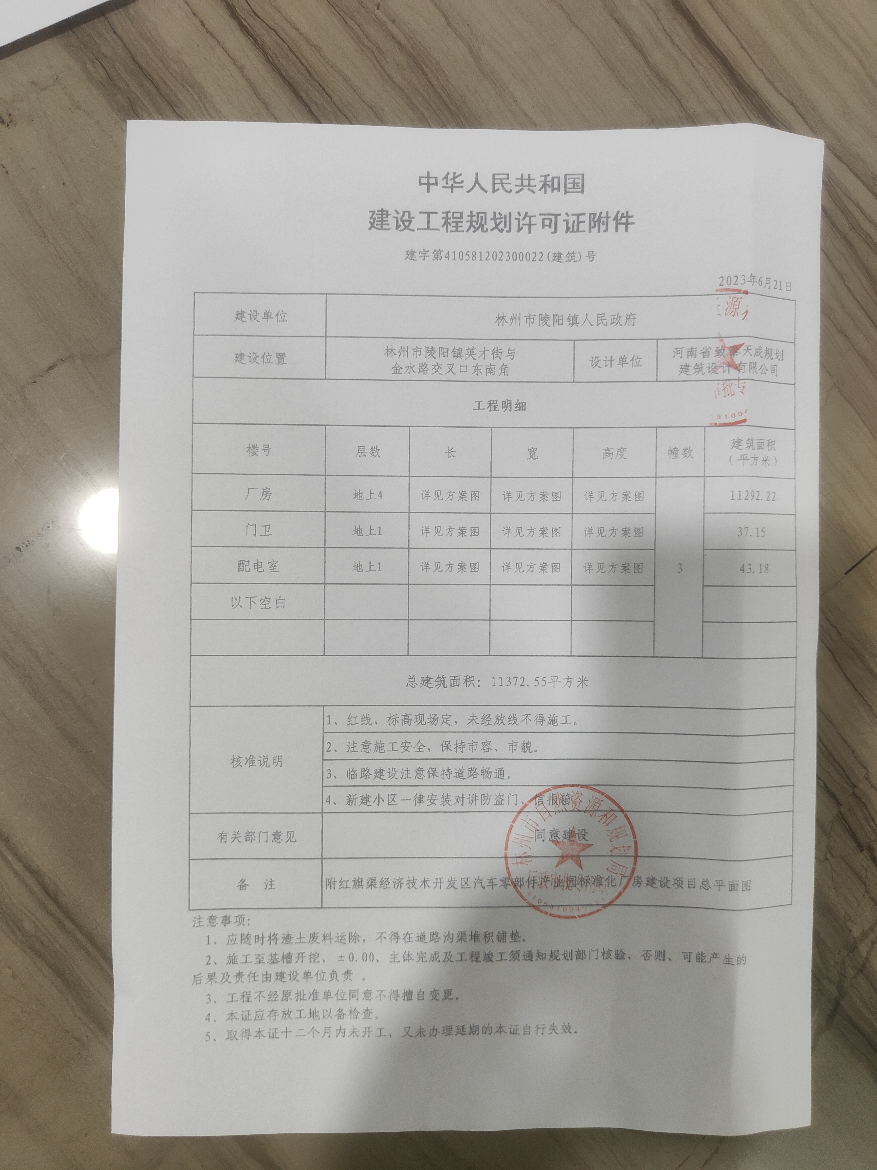 林州市陵阳镇人民政府红旗渠经济技术开发区汽车零部件产业园标准化厂房建设项目批后公告