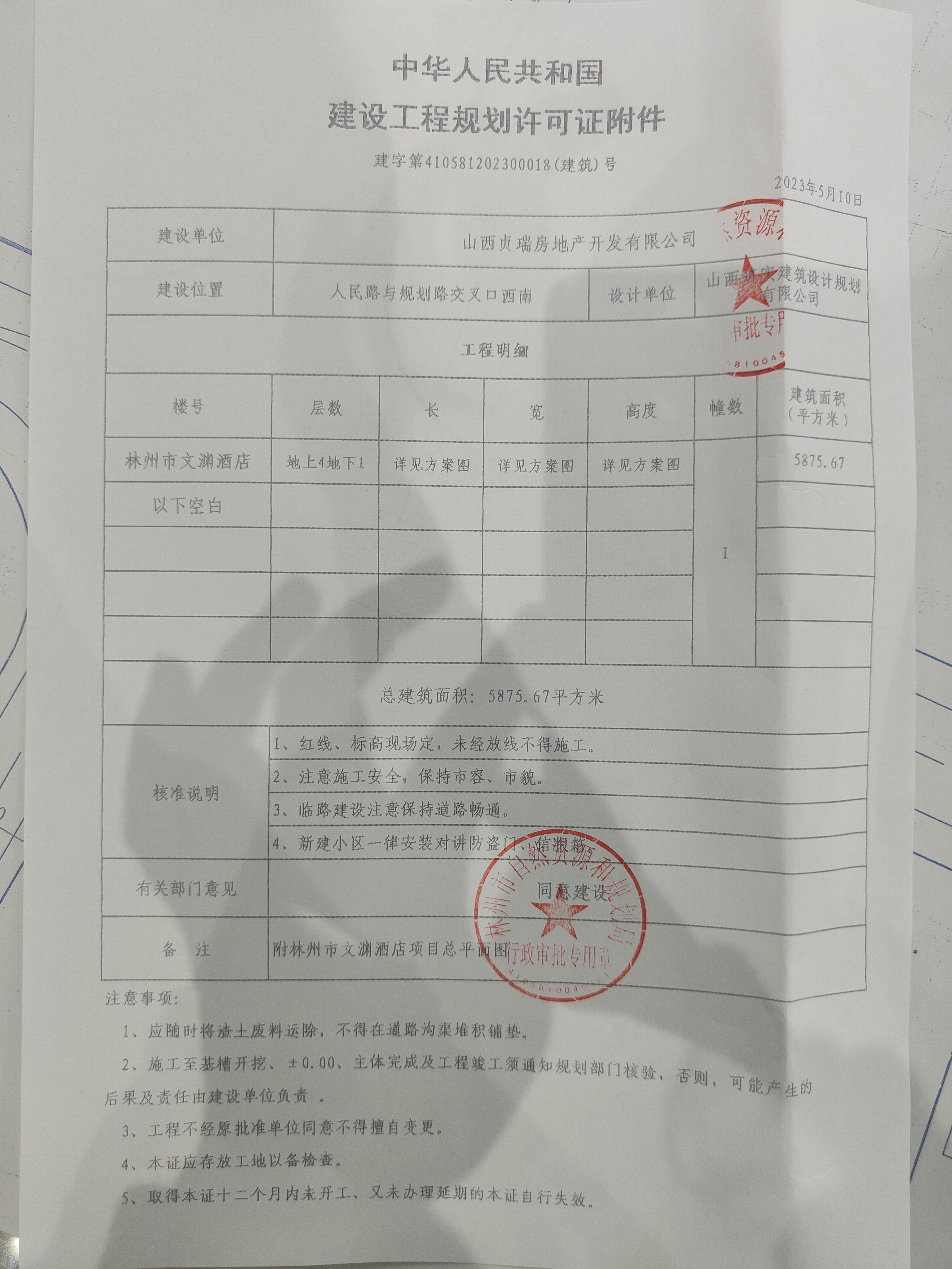 山西贞瑞房地产开发有限公司林州市文渊酒店项目批后公告