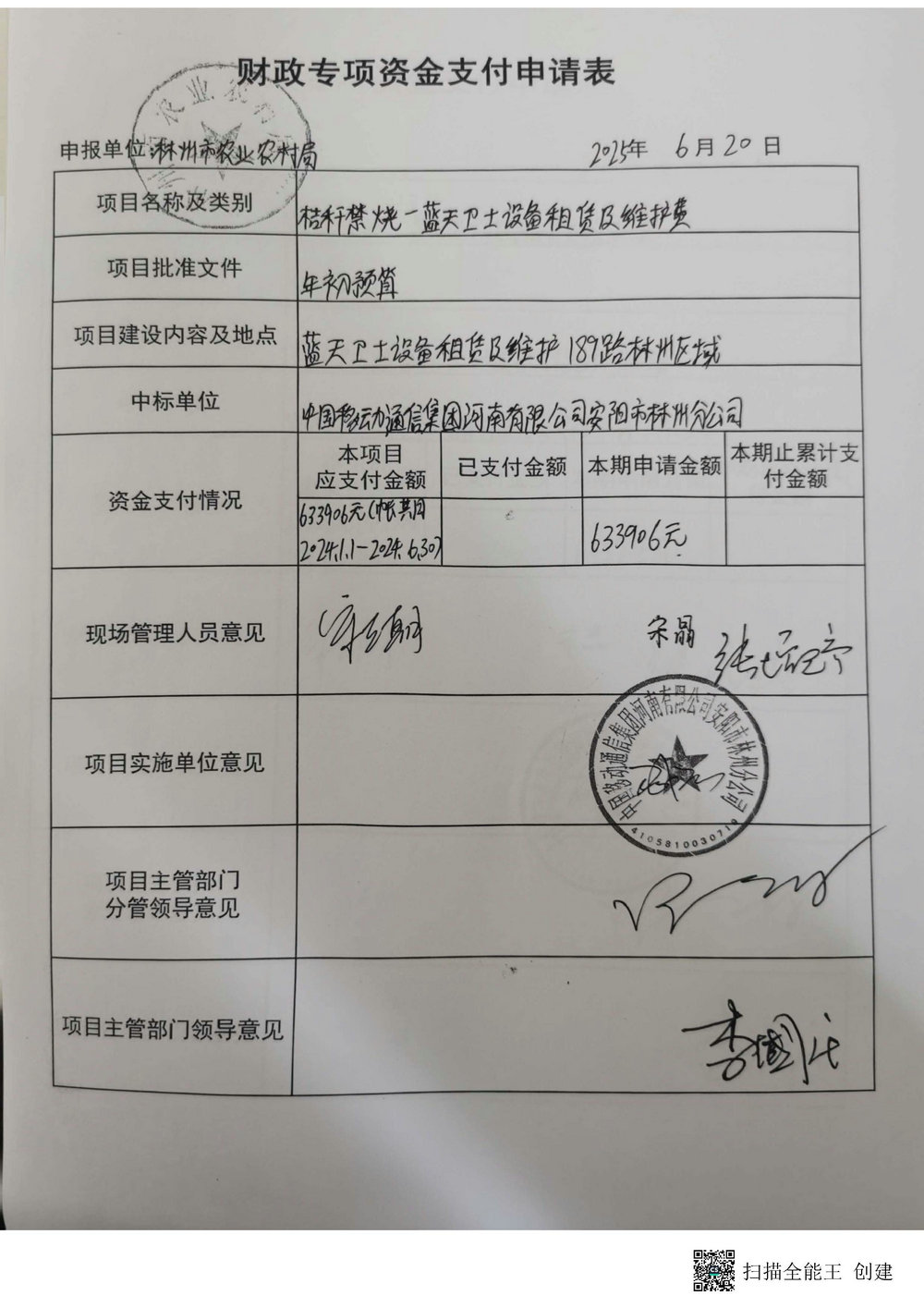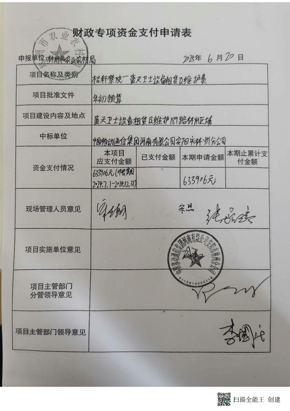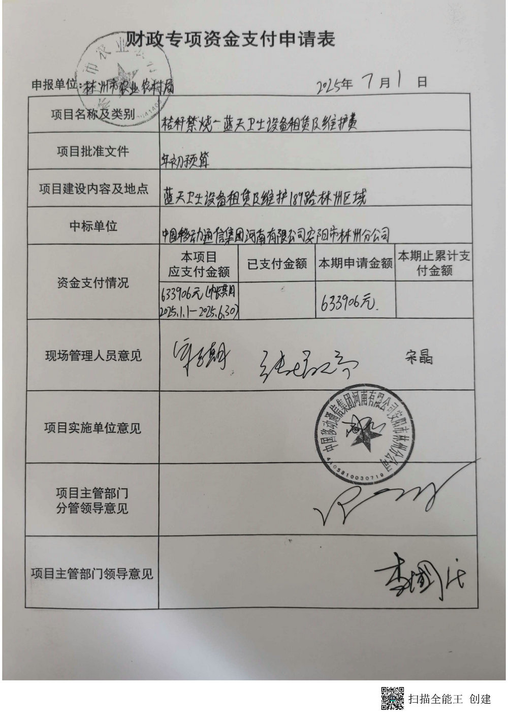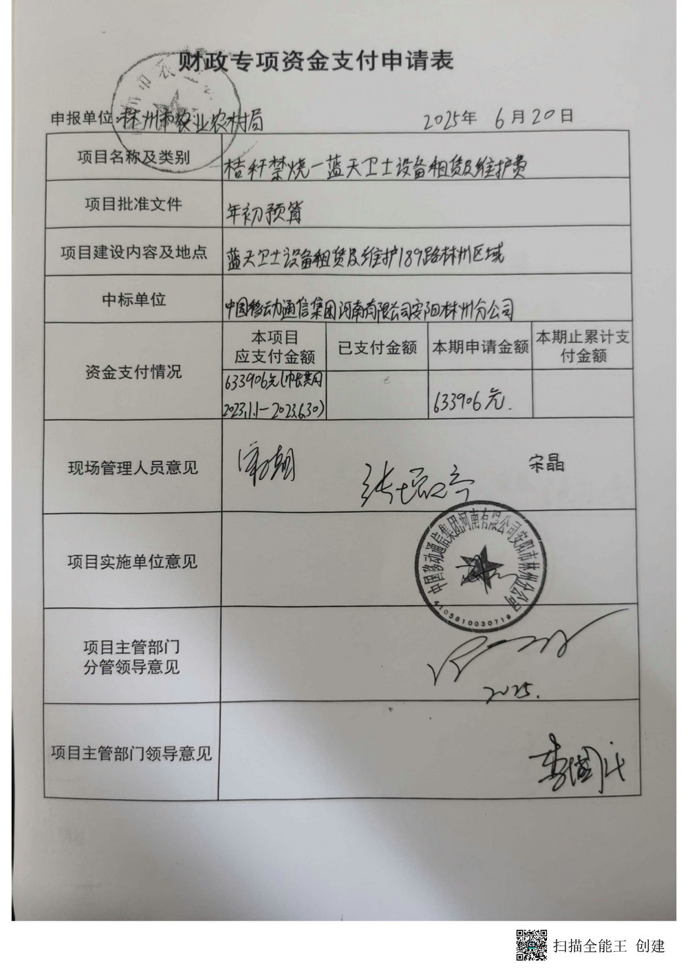 2023年1月至2025年6月秸秆禁烧蓝天卫士租赁费和维护费支付公示