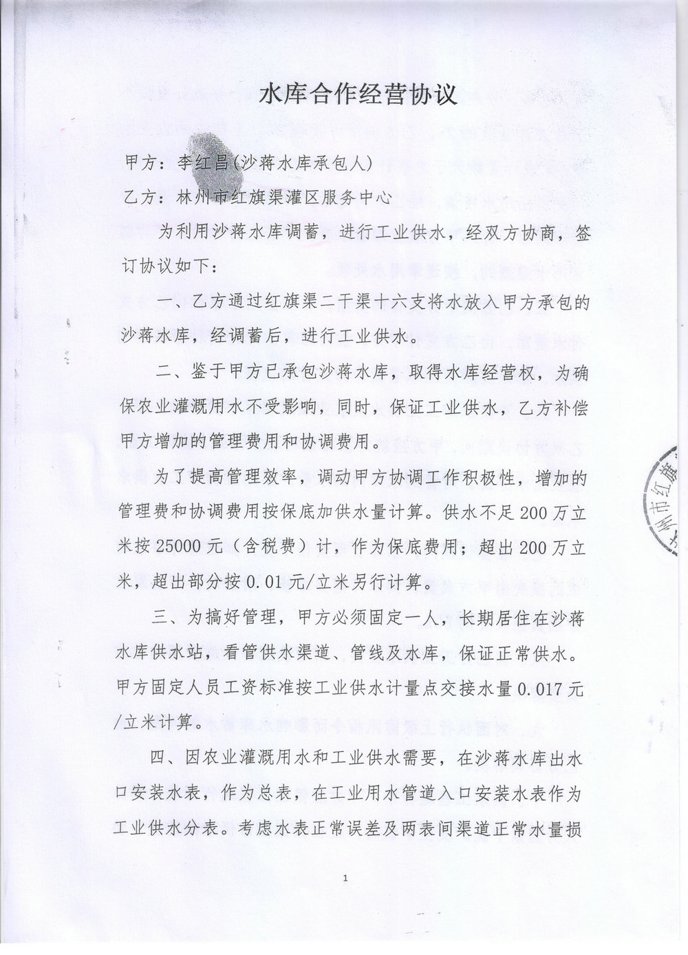 林州市红旗渠灌区服务中心沙蒋水库管理费支付公示